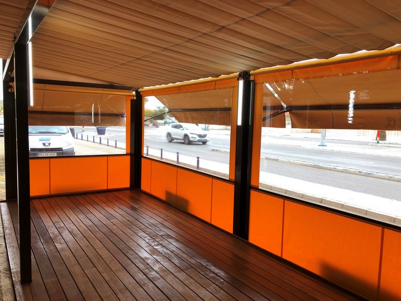 Este sistema permite añadir accesorios, como tiras de led en la palillería, radiadores de calefacción y cerrar los laterales con toldos cortavientos.