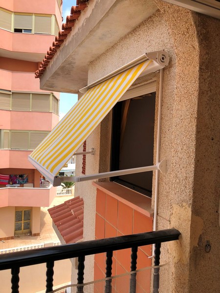 Es un toldo indicado para balcón y este tipo de toldo puede hacerse guiado por cable o por guía de aluminio convirtiéndolo así en un toldo telón, muy empleado en terrazas de restaurantes. Si necesitas comprar un toldo estor, somos expertos en la venta, instalación y montaje del modelo de toldo estor en Vergel.