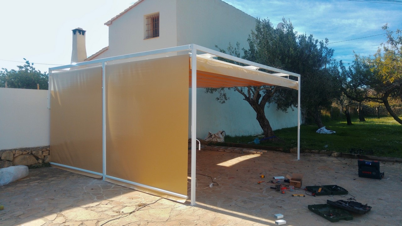 Los toldos de telón, o sistema de toldo vertical es ideal para cerrar pérgolas, porches, cobertizos...