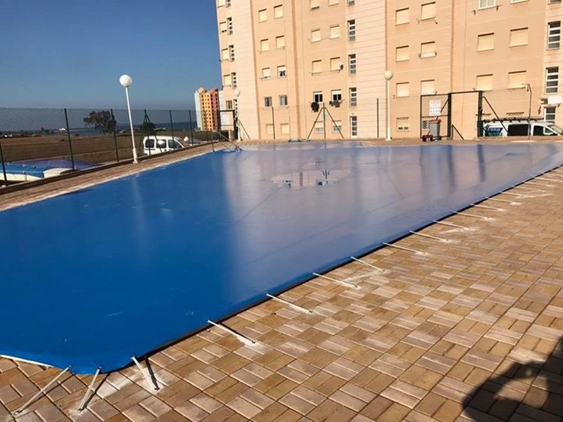 Cobertor fabricado en tejido especial para piscinas con tratamiento anti-moho.