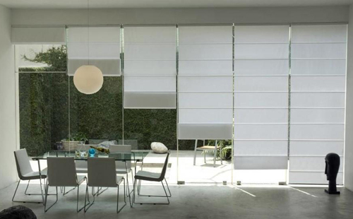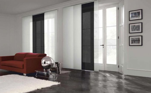 Especialmente indicado para cubrir grandes ventanales, de techo a suelo. Compuesto por varios paneles que se mueve horizontalmente por una guías o rieles. Los rieles tienen entre 2 y 5 vías, lo que hace que los paneles se superpongan entre sí, pudiéndose recoger a un lado, a ambos o al centro.